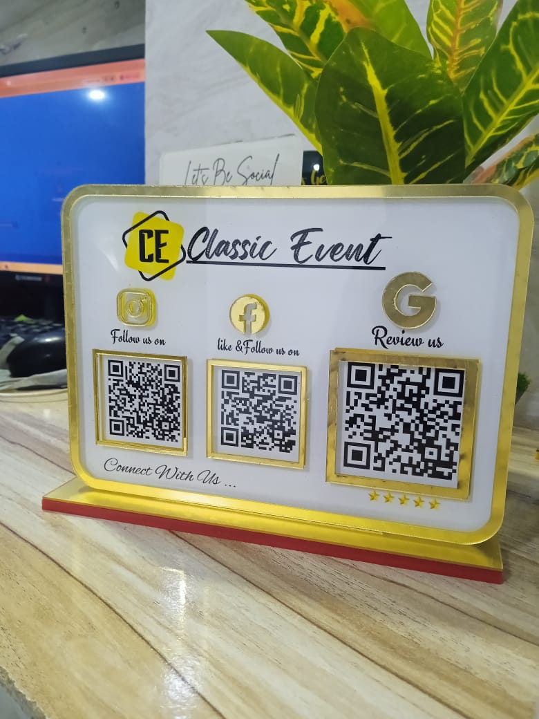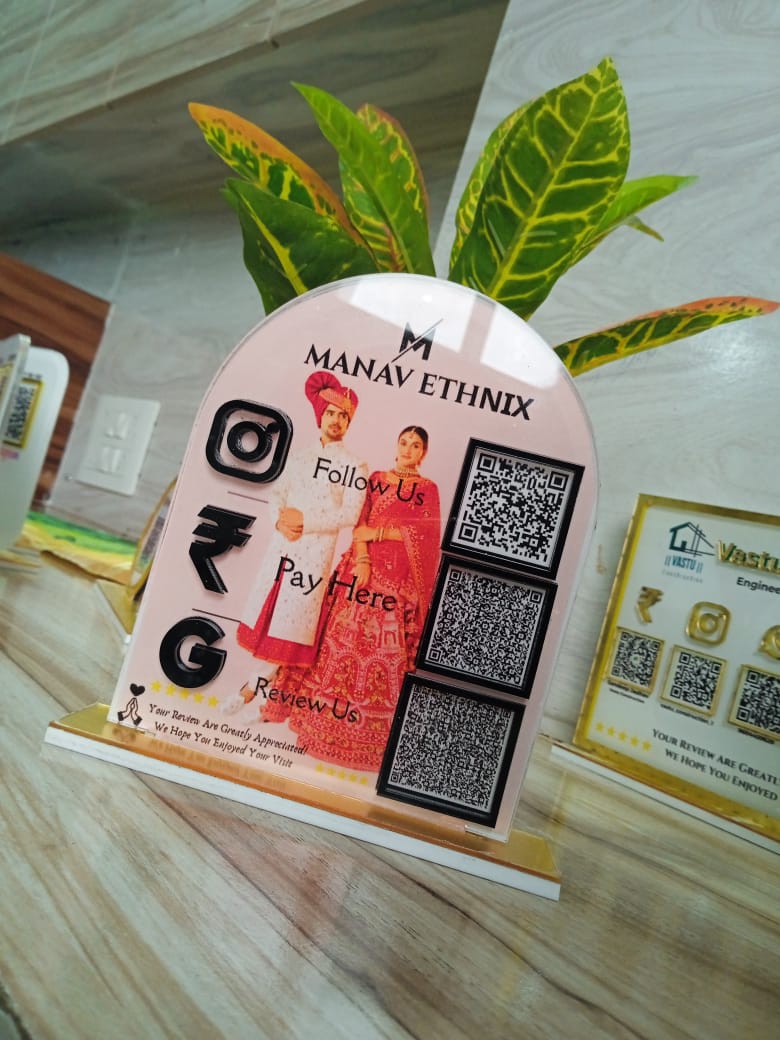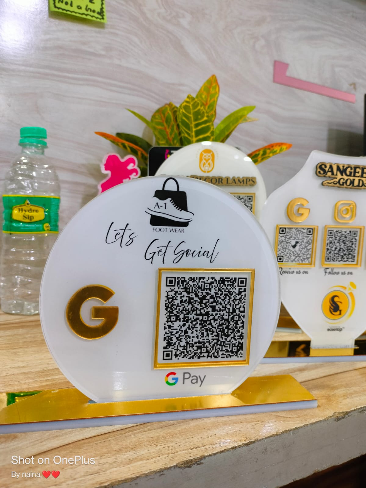 Golden base ke saath standee ka look kaafi premium lagta hai. Counter par rakhte hi customers scan kar rahe hain aur Google reviews, WhatsApp chats sab smoothly aa rahe hain. Acrylic quality strong hai, finishing clean hai. Simple product hai, par brand image aur customer engagement dono clearly improve ho gaye.