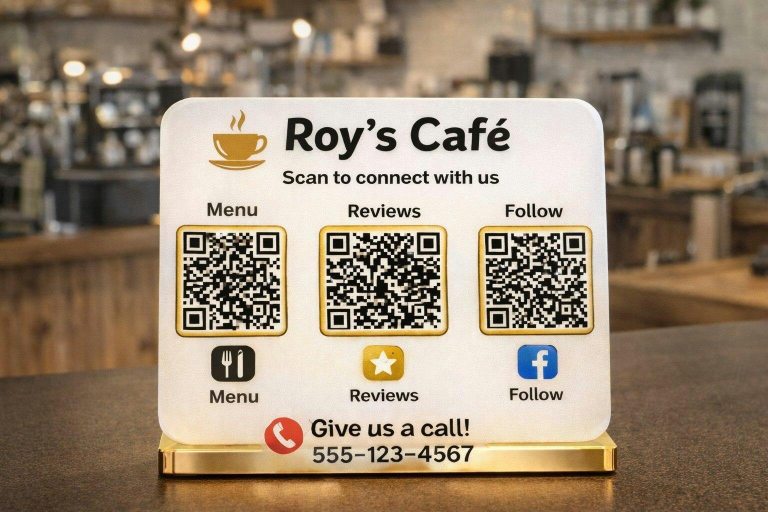 Aap 1 se 5 QR codes tak add kar sakte ho. Common use hota hai: Google Reviews, WhatsApp, Instagram, Website ya Menu ke liye.